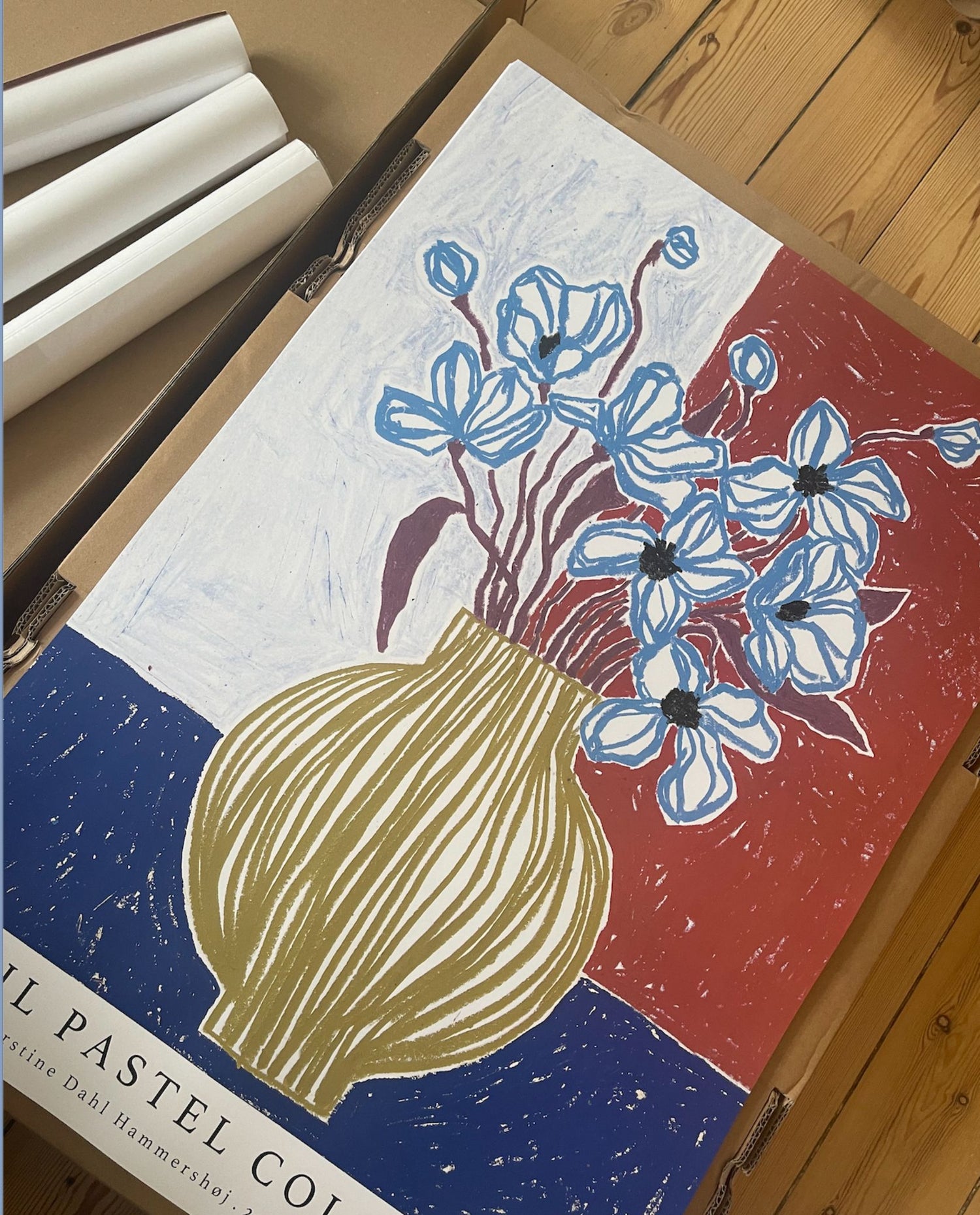 Kirstine works with textile design and art, where her creative processes often start with spontaneous ideas that are quickly turned into action. Her posters combine her background as a textile designer with a unique sense of color and texture, giving her works a strong expression. Each process is characterized by a balance between immediacy and perfection, where she constantly fine-tunes her creations to find the right harmony.